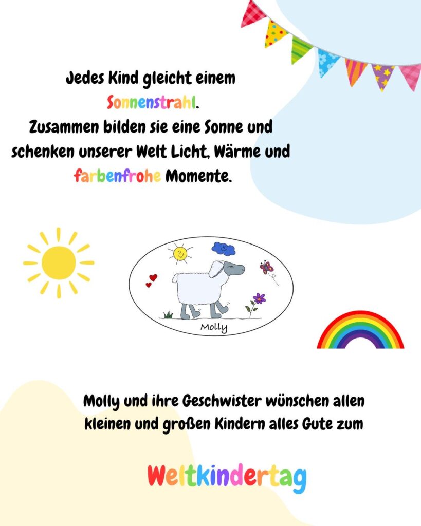 Wer mehr von Molly sehen möchte kann ihr auch direkt bei Instagram folgen @maskottchen.molly oder auf Facebook unter „Molly das Vereinsschaf“. wo es viel aus den unterschiedlichen Kindertagespflegen und was es dort erlebt, berichten wird.