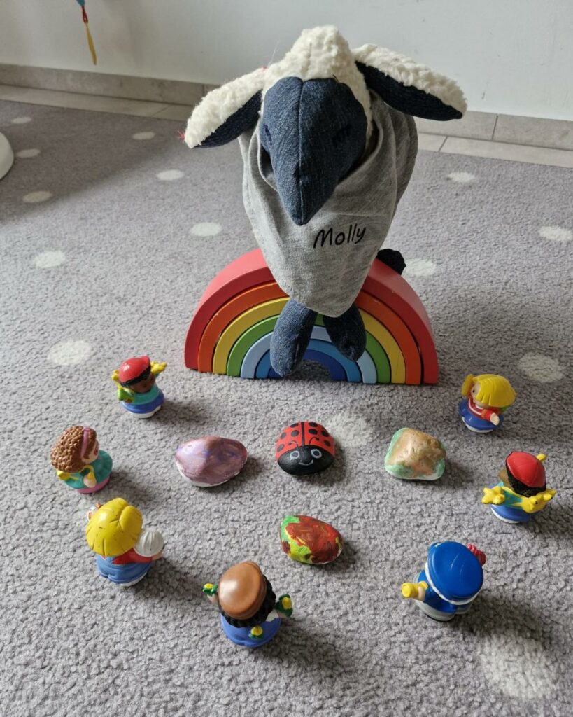 Unser Maskottchen Molly das Schaf, hat sich auf den Weg gemacht, durch all unsere Kindertagespflege Räume zu reisen, um in Zukunft die unterschiedlichsten Aktionen von uns zu begleiten. Ihr werdet es also mit Sicherheit auch des Öfteren hier auf unserer Seite entdecken.